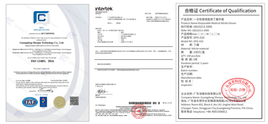 Disposable Medical Nitrile လက်အိတ်s certificate: