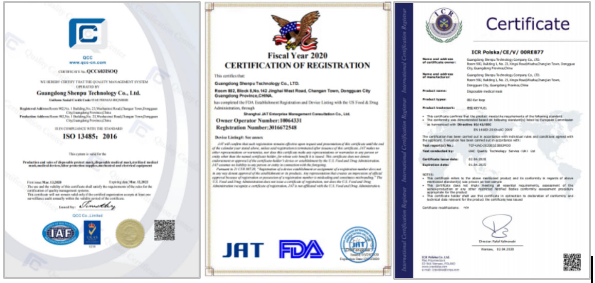 Disposable Medical မျက်နှာဖုံး certificate: