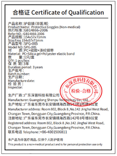 5.လက်မှတ် of Protective Goggles(Breathable)