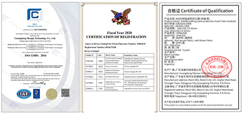 KN95 အသက်ရှူအဆို့ရှင်အကာအကွယ်မျက်နှာဖုံး certificate: