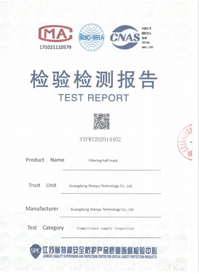 N95 အကာအကွယ်မျက်နှာဖုံး (ခေါက်)-FFP2Test Report