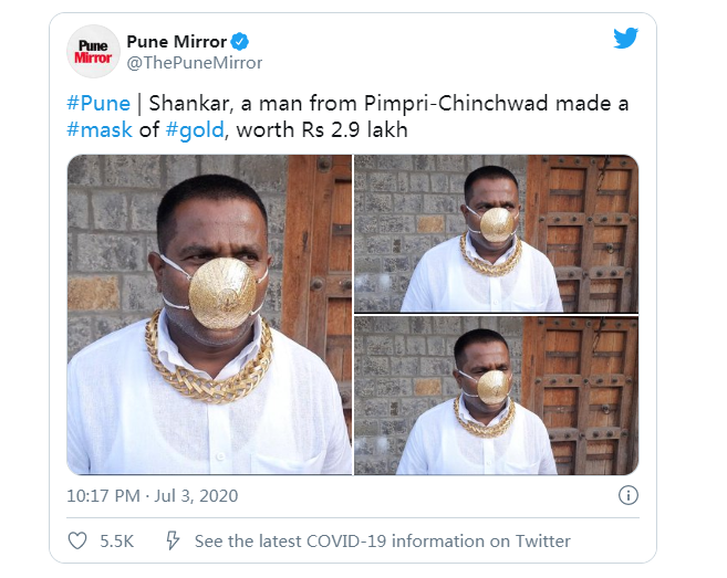 မျက်နှာဖုံးအိန္ဒိယတွင်မွေးဖွားခဲ့ပြီးစီးပွားရေးလုပ်ငန်းရှင် Shankar Kurade သည်ရွှေတစ်လုံးကိုပြင်ဆင်ခဲ့သည်